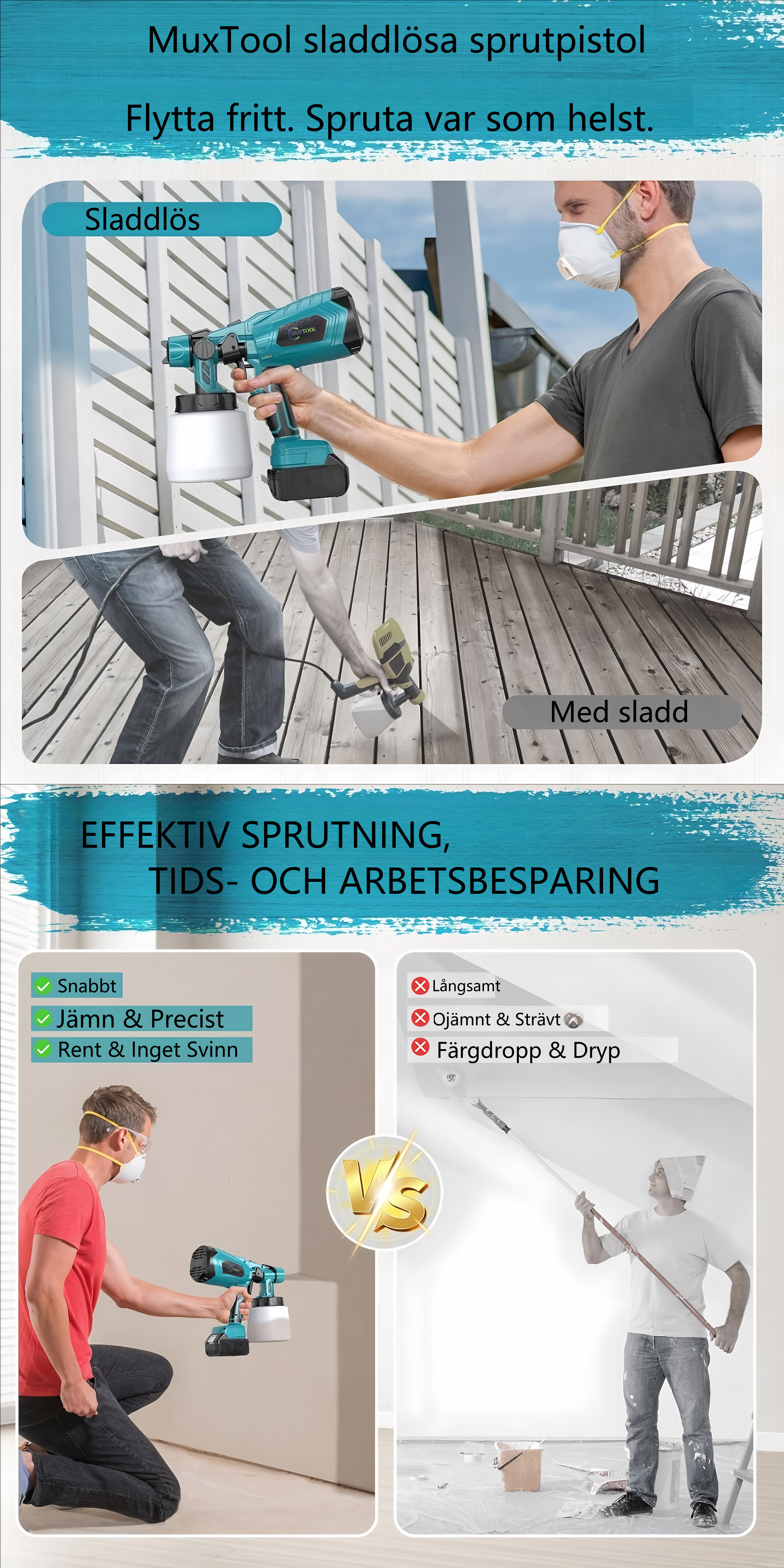 En sladdlös sprutpistol med 2 batterier, passar till DIY-målning av hus, möbler och staket.